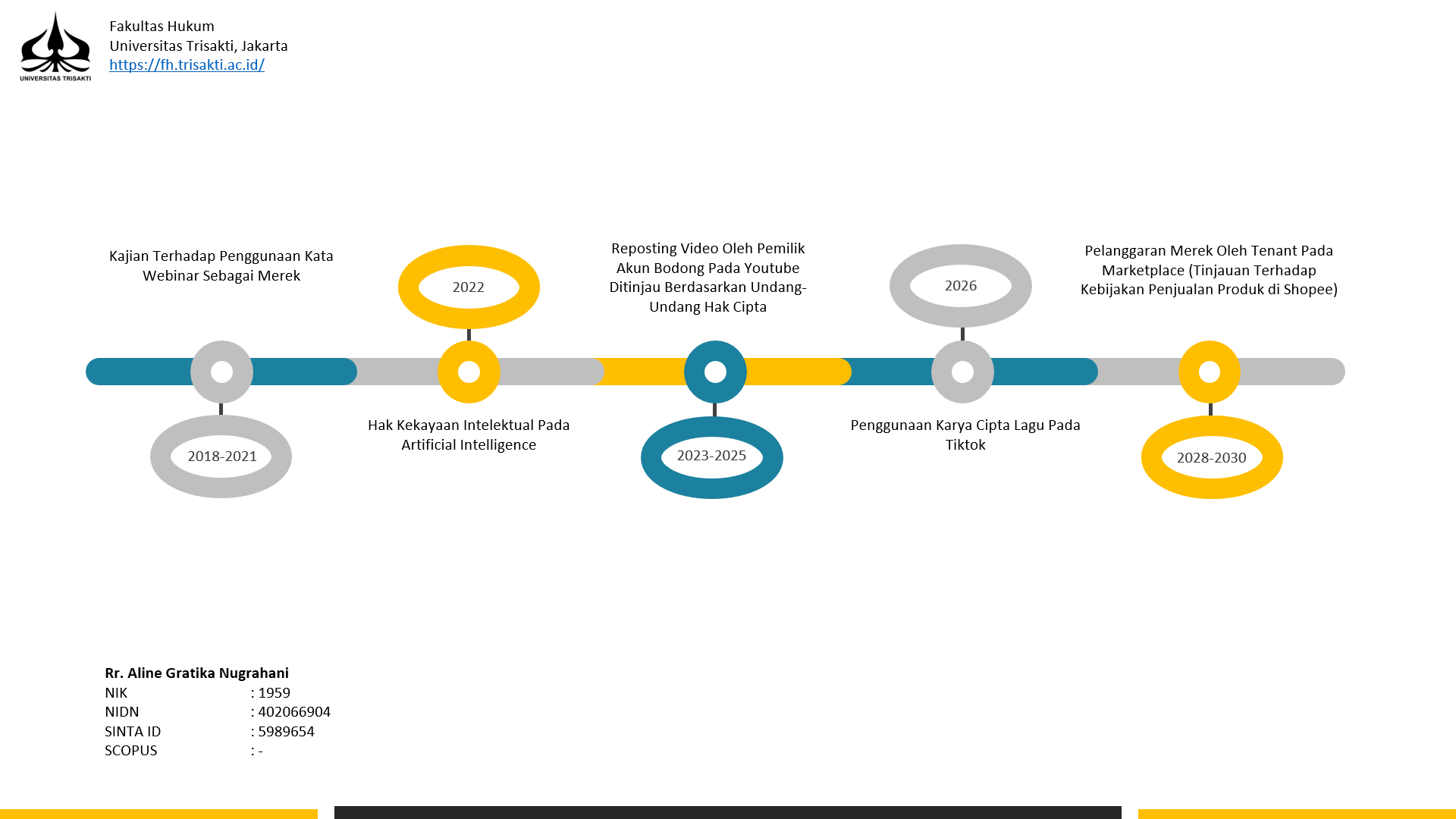 S.H. (Universitas Trisakti, Jakarta, Indonesia); M.Hum. (Universitas Tarumanagara, Jakarta, Indonesia); Dr.(Universitas Trisakti, Jakarta, Indonesia).