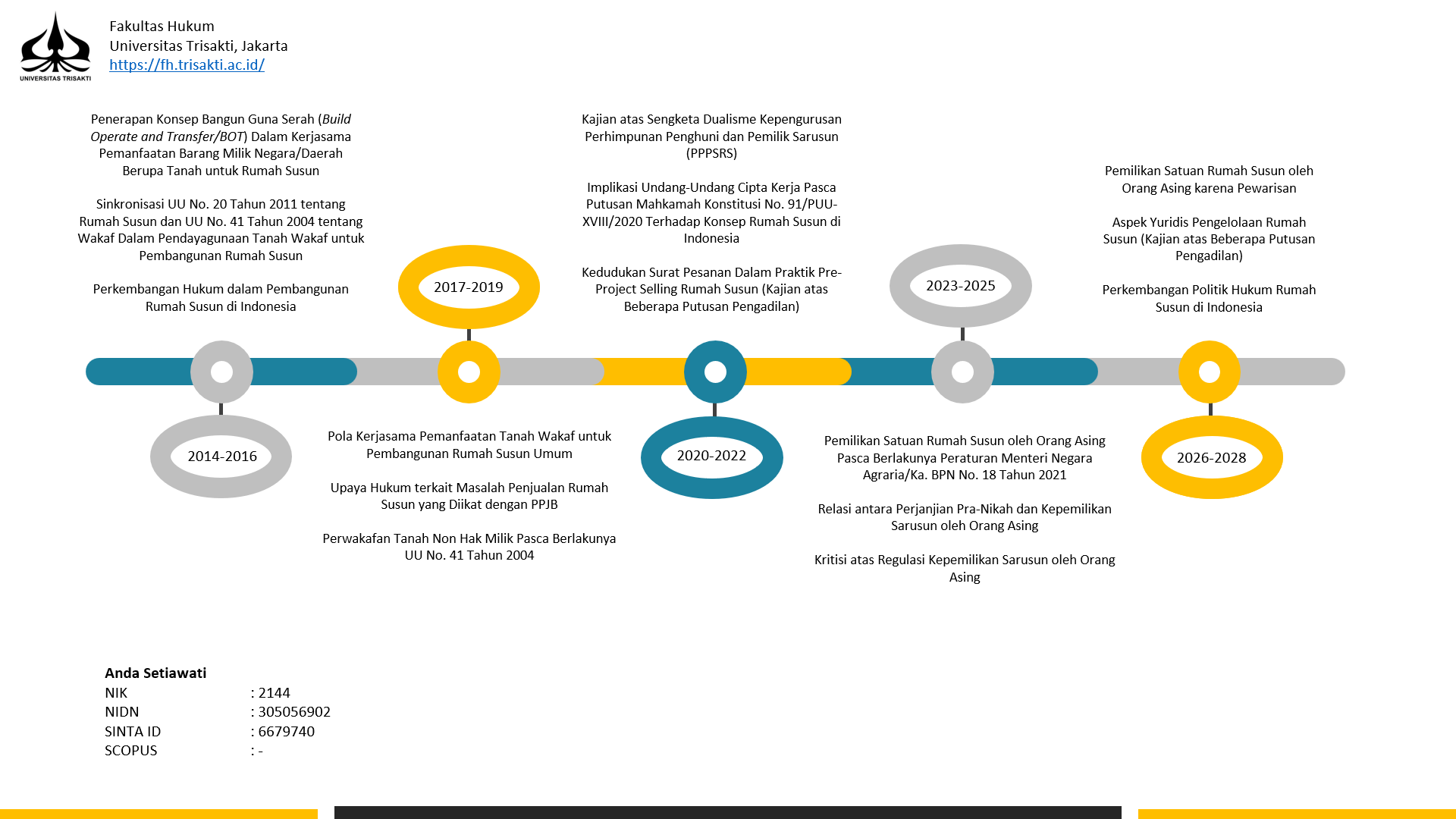 Anda Setiawati merupakan dosen tetap Fakultas Hukum Universitas Trisakti dengan peminatan Hukum Agraria.
