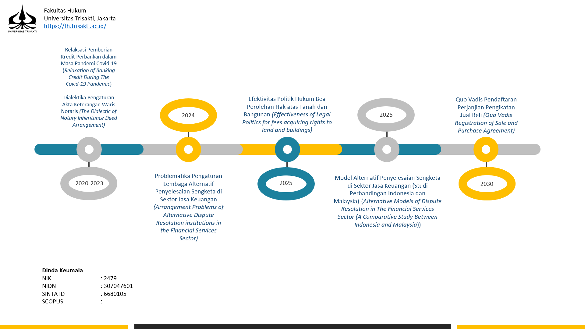 Dinda Keumala merupakan dosen tetap Fakultas Hukum Universitas Trisakti dengan peminatan Hukum Agraria.